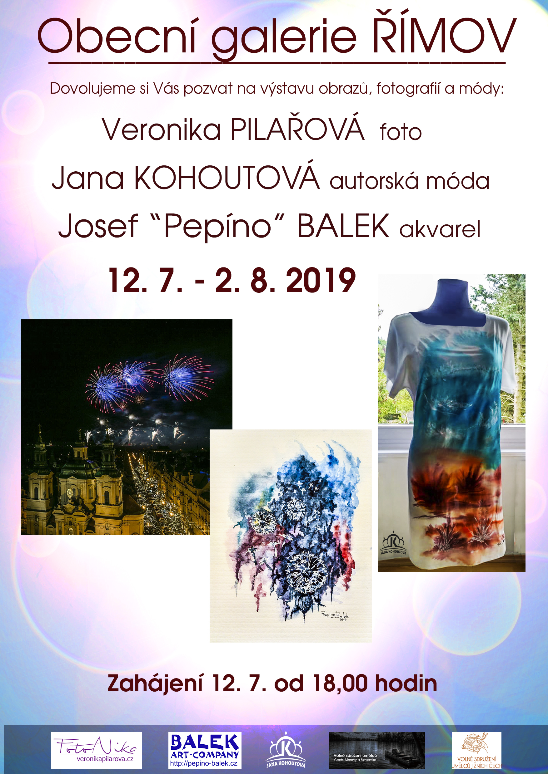 v pátek dne 12.7.2019 se od 18,00 uskuteční zahájení společné výstavy Pepína Balka , Veroniky Pilařové a Jany Kohoutové