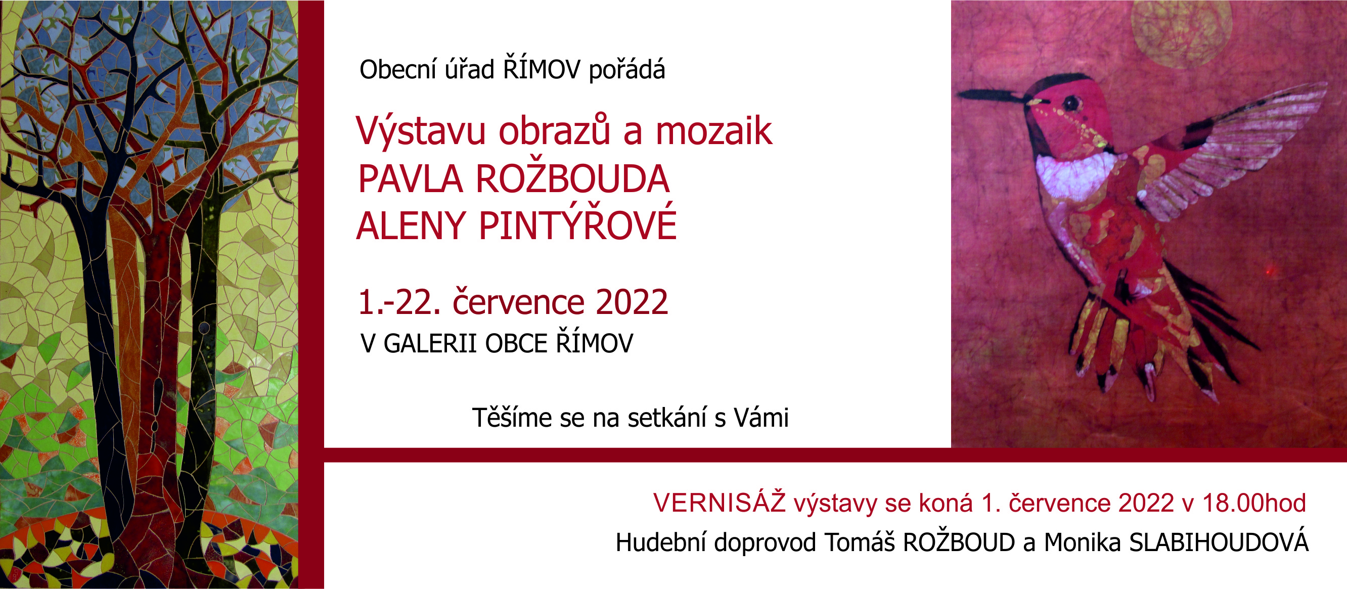 výstava obrazů a mozaik Bavla Rožbouda a Aleny Pintířové