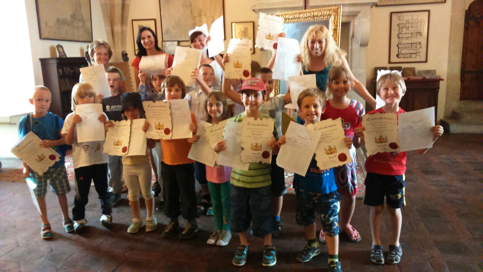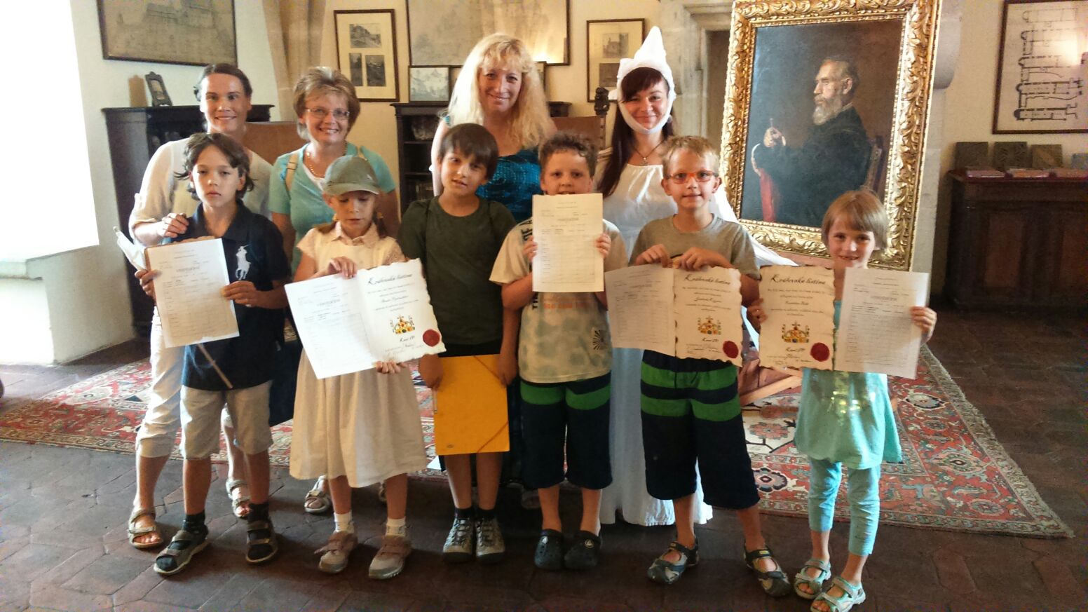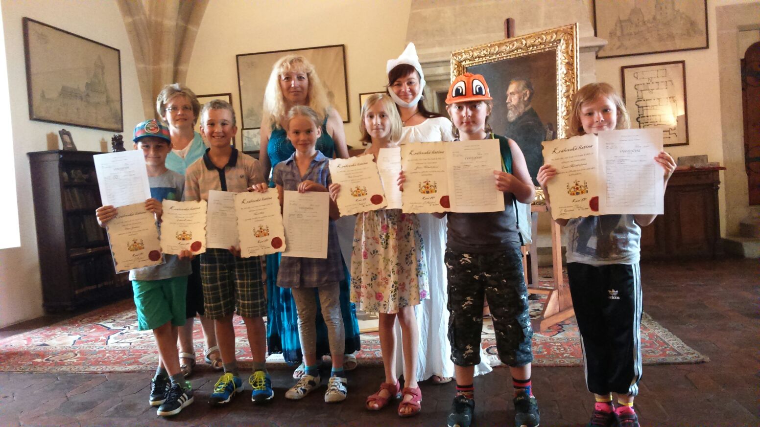 Dne 30.6.2016 ukončili žáci naší školy školní rok slavnostně na Karlštejně. Při prohlídce II. prohlídkového okruhu, která byla žákům předem pečlivě připravená a "ušitá na míru", bylo dětem předáno od paní učitelek vysvědčení a od Bílé paní Královská listina.